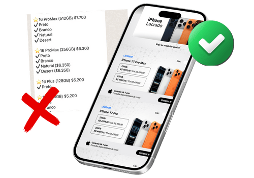Um catálogo bem feito ajuda o cliente a escolher o iPhone certo e faz você fechar mais vendas no dia.
